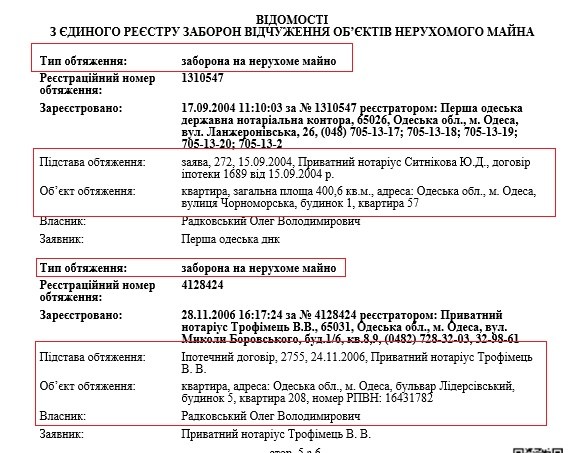 В целом, у Радковского практически не осталось весомых активов. Само имущество политика арестовано за долги. От банкротства чету Радковских спасают лишь авантюры с продажей недвижимости в недострое «Набережный квартал» на Фонтане и Крыжановке и ЖК «Апельсин» на Среднефонтанской дороге. В случае, если компании Радковского проиграют суд по недостроям – у зампреда Одесского областного совета возникнут очень большие проблемы.