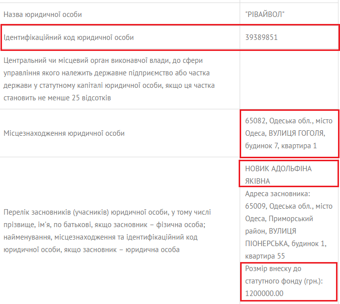 Она же управляет компанией «Ривайвол» и три года назад в 77 лет она внесла 1,2 млн гривен в уставный фонд для основания фирмы. Контора находится в той же квартире на улице Гоголя, 7, которая принадлежит Олегу Радковскому и находится под арестом.