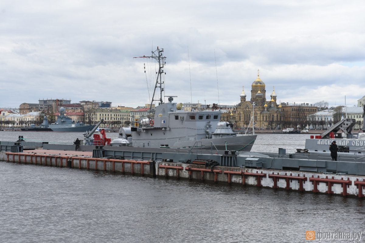 Из шести кораблей отряда у причала остались только тральщики «Александр Обухов» и РТ-57, а также МПК «Зеленодольск». Подводная лодка «Колпино» и малый противолодочный корабль «Уренгой», пришедшие 3 мая, акваторию Невы покинули. По информации издания, МПК «Зеленодольск» и тральщики уйдут из города вечером.