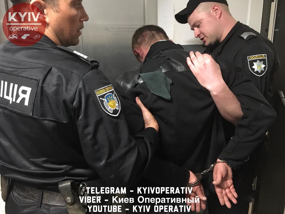 В сети было опубликовано видео и фото задержания злоумышленника, который открыл стрельбу в одном из супермаркетов в Печерском районе Киева, ранив охранника.