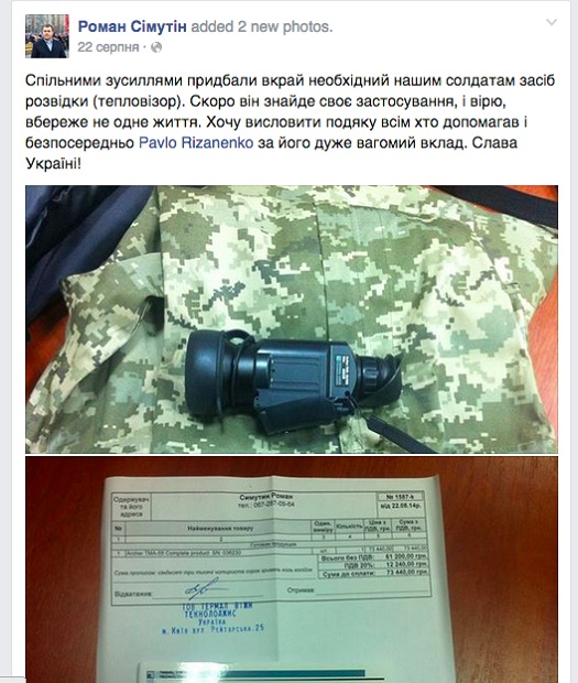 В то время, как народные депутаты отдают свои миллионные состояния на обеспечение солдат в зоне АТО, Павел Ризаненко тоже не стоял в стороне, а передал целых три тысячи гривен на тепловизор, община Броваров собрала 40 тыс..