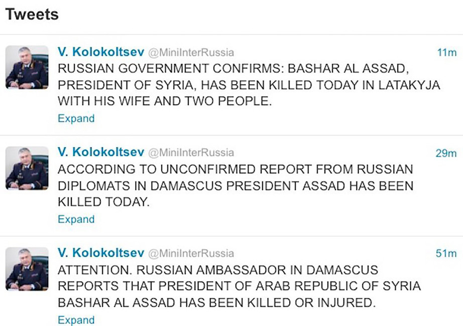 Слух разросся в настоящую новость, породив «обстоятельства» произошедшего: что Ассад был ранен и т.п. Твит с фейкового аккаунта вызвал беспокойство на финансовых рынках и рост цен на нефть.