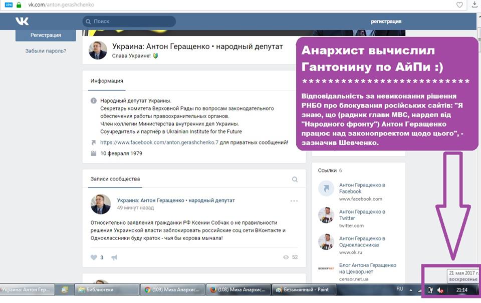 Подлили масла в огонь и журналисты, которые выяснили - целый ряд украинских политиков и чиновников на сегодняшний день являются активными пользователями соцсетей. Благодаря этому уже после начала блокирования Вконтакте украинцы узнали, что запретные ресурсы продолжают посещать дети целого ряда первых лиц государства, и, например, депутат Антон Геращенко. Тот самый, который якобы готовит законопроект о наказаниях для провайдеров...