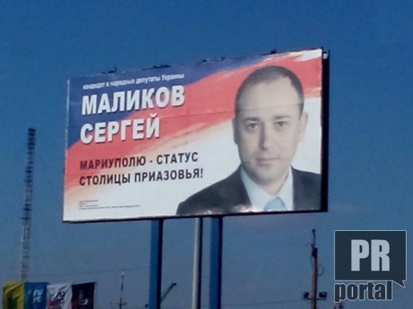 Сергей Маликов, 1977 г.р., экс-депутат Мариупольского горсовета, беспартийный самовыдвиженец, который известен горожанам как регионал. В свое время был самым молодым за всю историю города секретарем горсовета. Возглавлял при Януковиче фонд, через который прошло много бюджетных миллионов. Оппоненты называют его “человеком Семьи”. Интересно, что этот кандидат написал на своих баннерах: “Мариуполю – статус столицы Приазовья”. Что, учитывая использование в рекламе цветов российского триколора, читается как “столицы Приднестровья”