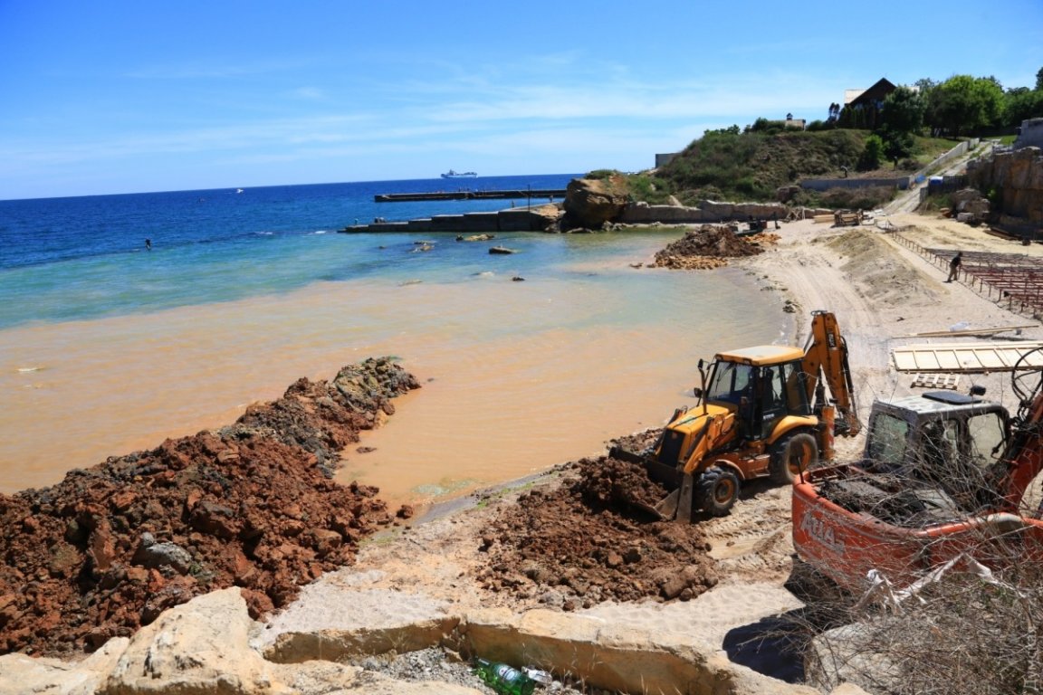 По словам охранника, экскаваторы расчищают дно от камней, а на месте четырехметровой стены будет декоративная ограда с арочным входом. При этом издание отмечает, что проход на пляж пока есть.