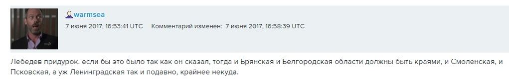 "В России все просто - регионы в середине страны называются областями, а регионы по краям называются краями (а один регион прямо так и называется - Украина)", - отметил Лебедев.