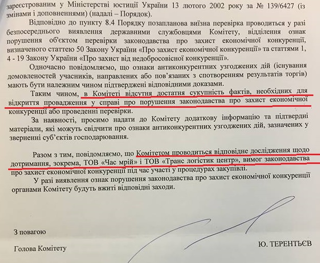 Громадська ініціатива «За чесний тендер» оскаржувала до Антимонопольного комітету минулорічні закупівлі харчування для дітей-чорнобильців, у яких брали участь та вигравали ті ж самі фірми. Однак чиновники не побачили там жодних порушень, і запевнили що проводять перевірку щодо дотримання фірмами «Транс Логістик Центр» та «Час мрій» вимог законодавства.