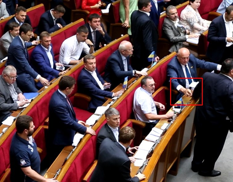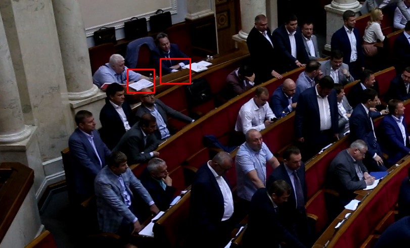 Сообщается, что из группы "Партия Видродження" кнопкодавили Антон Яценко, Евгений Геллер, Виталий Хомутынник, Дмитрий Святаш, Виктор Бондарь и Станислав Березкин. Из "Оппоблока" на голосовании за другого человека поймали Михаила Добкина, из "Народного фронта" - Сергей Фаермарк и Александр Кирш, Андрей Река.