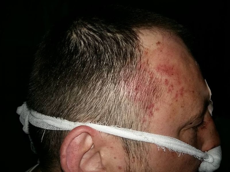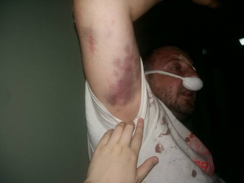 Также Приходько опубликовал фото избитого добровольца поссле "общения" с полицией: