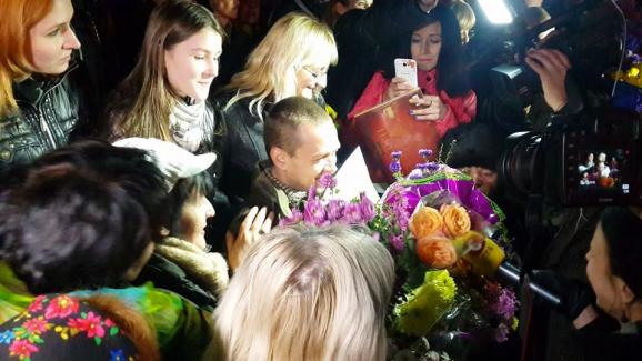 Дніпропетровці прийшли з квітами, прапорами, солодощами, подарунками. Дехто приніс власноруч виготовлені обереги. Загалом на площі зібралось кілька сотень людей. Вони вітали солдатів вигуками "Герої!", "Дякуємо!", "Слава Україні!", обіймали, діти – фотографувались з бійцями на згадку.