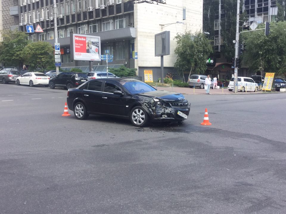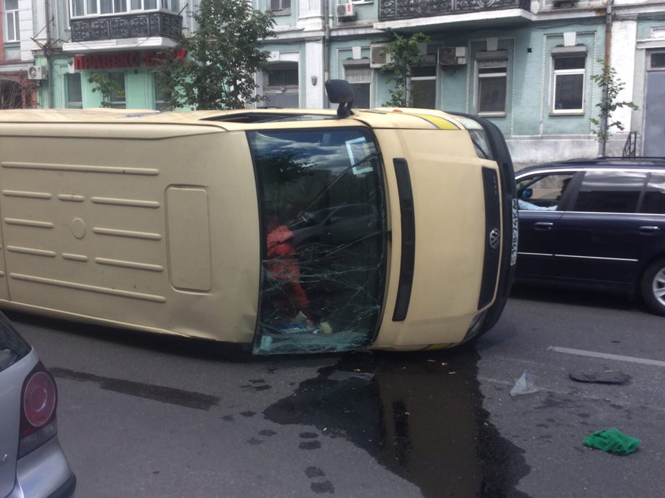 В среду, 5 июля, в Киеве на перекрестке улиц Саксаганского и Шота Руставели произошла авария с опрокидыванием автомобиля Укрпочты.