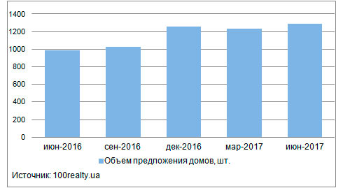 Количество выставленных на продажу частных домов, в июне по сравнению с мартом, увеличилось на 4% до 1285 объектов. За первое полугодие 2017 года предложение домов в Киеве увеличилось на 2,3%. Относительно июня 2016 года, количество домов выросло на 29,8%.