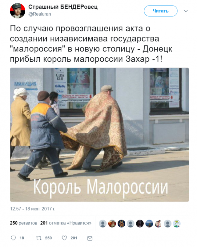 Пользователи соцсетей отреагировали на сегодняшнее заявление главаря «ДНР» Александра Захарченко о создании «государства Малороссии» яркими фотожабами.