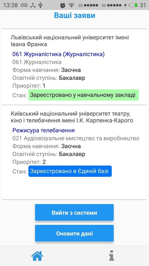 Мобильное приложение не дает возможности внесения изменений в поданные заявления на вступление, подачи в онлайн-режиме заявлений и сдачи вступительных экзаменов.