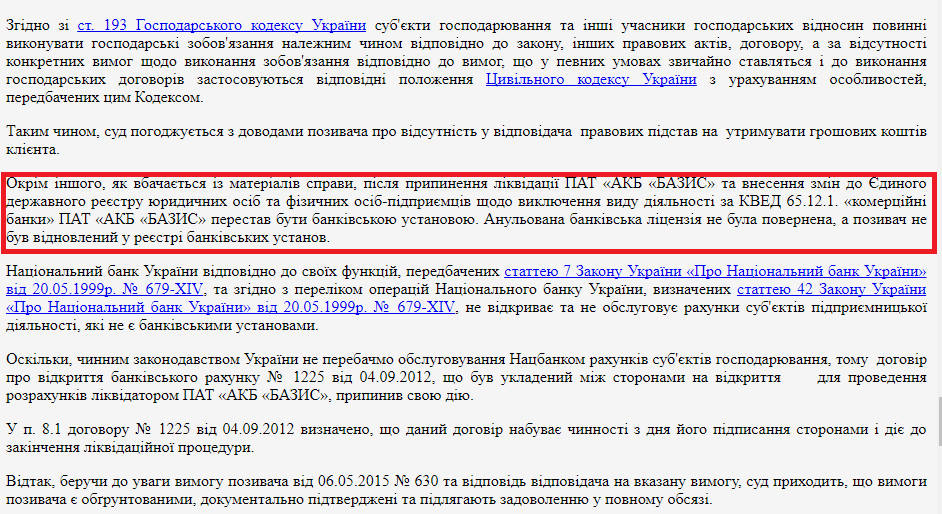 В апреле 2012 Национальный банк принял постановление №168 о введении временной администрации в Акционерный коммерческий банк «Базис» (Харьков). А уже в августе 2012 у «Базиса» была отозвана банковская лицензия, а сам он вступил в процесс ликвидации.