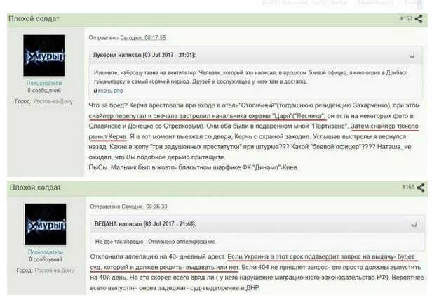 Дело в том, что даже отпетые рашисты указывают на то, что Керчь – редкостный подонок. В том числе он с подельниками убил 17-летнего Степана Чубенко. Это преступление признано всеми, в том числе «полицией» ДНР, которая также расследует это дело и претендовала на выдачу Керчи.