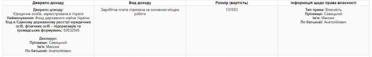Теги: Дорошук ГалинаЧиновникиЕ-декларацииСавицкий МаксимДекларацииСавицкая ОксанаФонд государственного имущества Украины