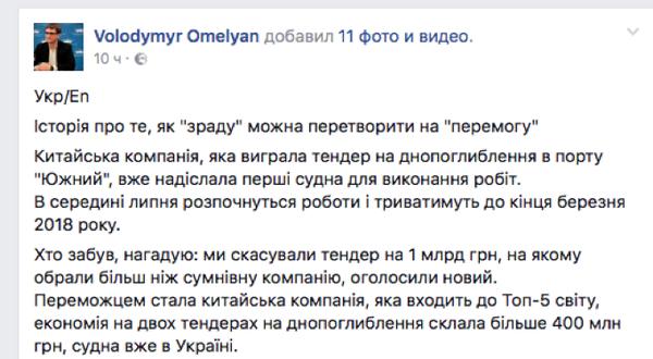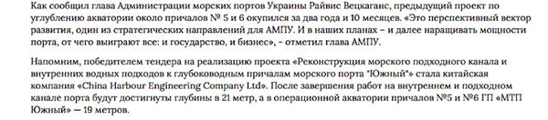 Высшими чиновниками исполнительной власти государства объявлена очередная «перемога», но она фактически состоит в том, что миллиарды наших гривен конвертируются в доллары и перекачиваются в чужие банки за перевозку украинского морского песка с одного участка дна на другой участок дна! А еще и для того, чтобы удовлетворить высших чиновников в само-пиаре в очевидной для специалистов афере. Причем, интересно, что подписывает новый контракт тот же портовый чиновник, т. е. гр-н М. Широков, который до того пытался фактически надуть государство в прошлогоднем тендере на 400 млн. грн., но остановленный также при личном участии премьера... Других поводов для пиара успехов у премьер-министра и министра инфраструктуры явно нет, приходится выстраивать громкий пиар на том, что подсовывают портовые аферисты...
