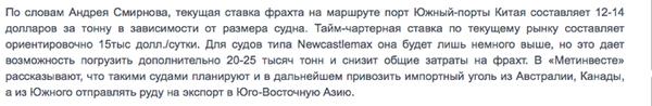 Использование еще бОльшего флота — а для этого делается пиар, расходуются колоссальные деньги и привлекается иностранный флот, — специалистами оценивается как совершенно бесполезный шаг для порта и для бюджета государства. Разница в фрахтовых ставках при найме бОльших судов экспортером — 1-2 доллара на тонне руды, а цена на нее колеблется постоянно в пределах ±50 долларов и так. Именно это и подтверждают даже сами сотрудники Метинвеста: