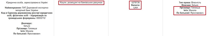 У декларації також вказано, що батько прокурора, перший екс-заступник Генпрокурора Махніцького, Микола Ярославович Голомша має на рахунках у банку 5,2 млн грн. Звідки такі гроші в людини, яка все життя пропрацювала у прокуратурі, – невідомо.