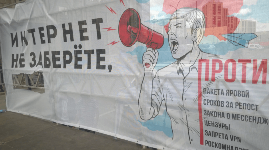 Также известно, что полицейские вырезали из плаката "Интернет не заберете, гады" слово "гады".