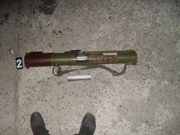 Из автомобиля правонарушителей изъяты бита, жесткий диск, тубус от РПГ, патроны, газовый пистолет и пакет с веществом белого цвета. Все изъятые предметы отправлены для проведения экспертизы, после которой возможна дополнительная правовая квалификация действий злоумышленников.