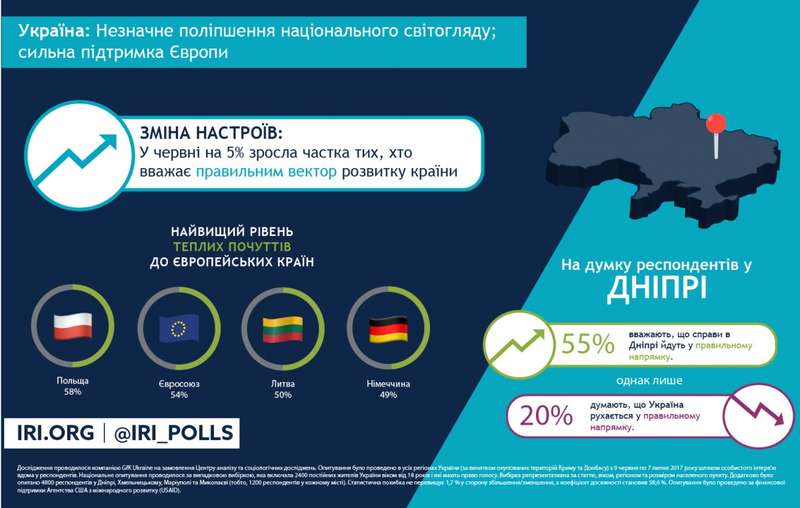 "Данные свидетельствуют, что после трех лет экономических трудностей и неутихающего вооруженного конфликта с Россией положительные сдвиги в экономике и введение безвизового режима со странами ЕС начинают ощутимо влиять на жизнь граждан Украине. Не следует переоценивать важность полученного результата относительно незначительного увеличения количества тех, кто одобряет направление развития страны, но одновременно это может свидетельствовать о росте оптимистических настроений относительно будущего Украины.