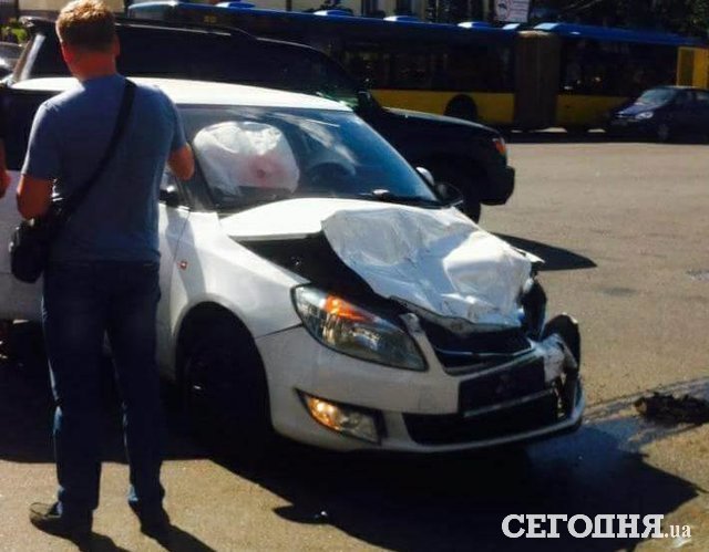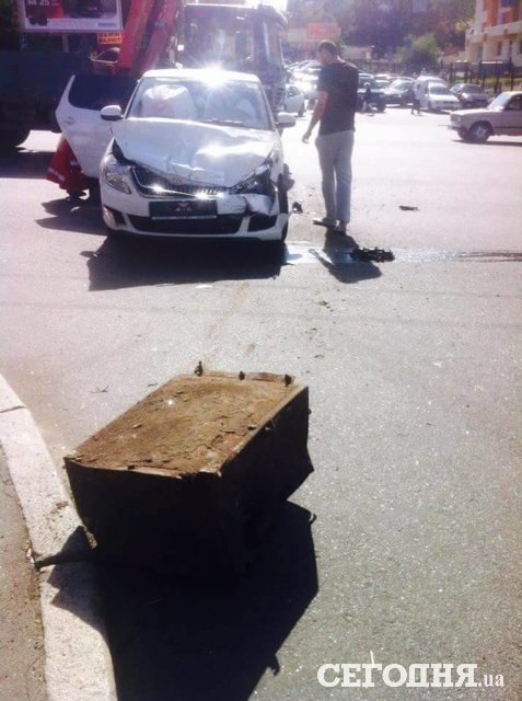 В Киеве на Караваевых дачах произошло ДТП с пострадавшими. Женщине прямо на капот авто упал сейф массой около 100 кг.