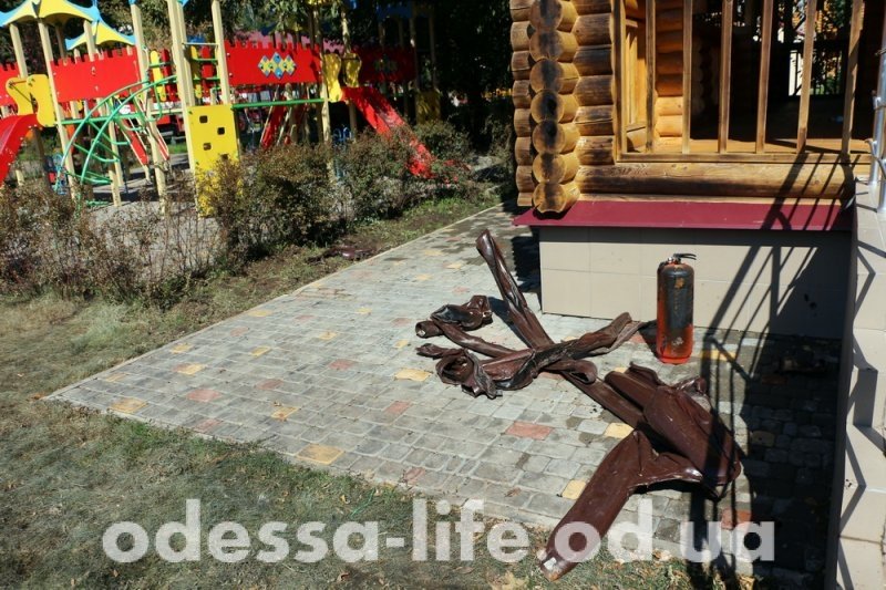 В самом детском лагере можно заметить принесенные одесситами мягкие игрушки и цветы. Правда, часть игрушек уже украли мародеры.