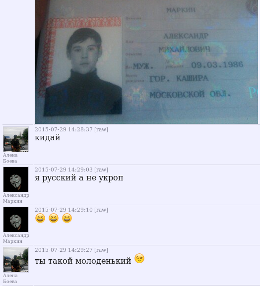 Возможно, что Бабининой в этом помог русский анонимус Александр Маркин. Должен вам сказать, что русские анонимусы настолько суровы, что основным методом взлома у них в то время была программа для удаленного управления компьютером TeamViewer, которую жертве предлагалось установить самостоятельно с целью немедленного излечения от вирусов и защиты от хакеров NATO и СБУ. Маркин и Бабинина познакомились в ходе конфликта между Бабининой и Романовой по поводу раскраденной гуманитарки.