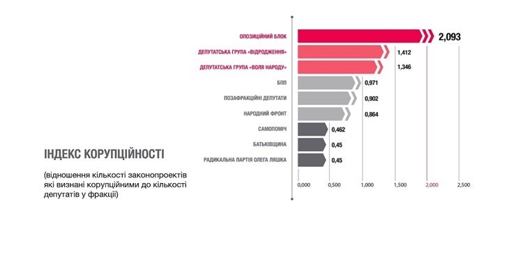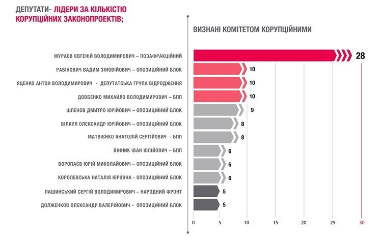 Комитет Верховной Рады по борьбе с коррупцией составил рейтинг парламентских фракций и народных депутатов, наиболее часто регистрирующих законопроекты с признаками коррупции.