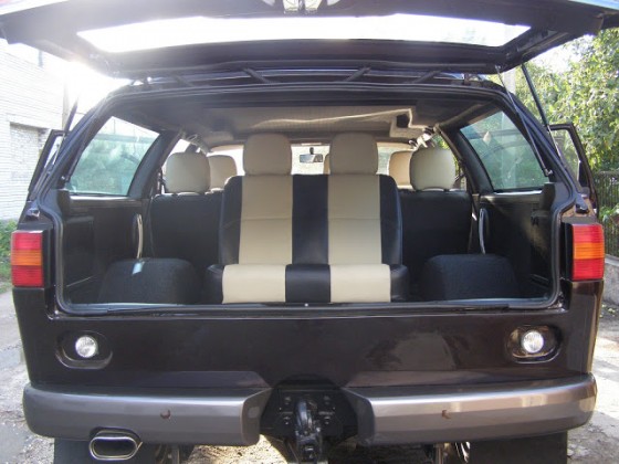 Кузов автомобиля изготовлен на самодельной раме из профильной трубы 60х40х3 мм и установлена на 12 существующих опорных кронштейнов на раме автомобиля ГАЗ-66 через резиновые подушки. На раме изготовлены крепления для сидений. На изготовление кузова взяты готовые двери и дверные проемы от старого Volkswagen Passat. Передняя панель кузова, облицовка радиатора, подкапотные подкрыльники, крылья передние и задние, арки задние и задняя дверь изготовлены самодельно. Передний капот двигателя изготовлен из листовой стали 1,0 мм, на капоте установлены два газовых подъемника, защелка и предохранительный крючок. На передних крыльях установлены фары от Audi A8. Задние фонари – от Пассата. Лобовое и заднее стекла изготовлены по заказу, согласно ГОСТу, в городе Запорожье. Количество посадочных мест – 9.