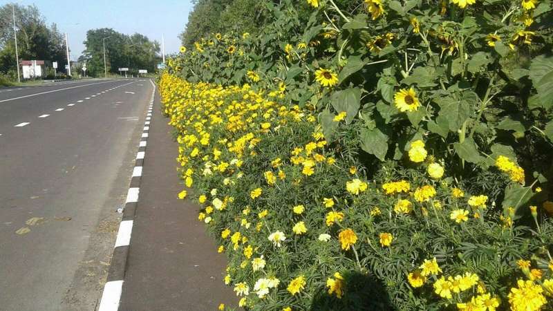 Волынский скульптор-монументалист Василий Рыжук вместе с помощницей, жительницей Луцка Еленой Мацюк, засадил обочины скоростных стратегических автотрасс подсолнухами и бархатцами.