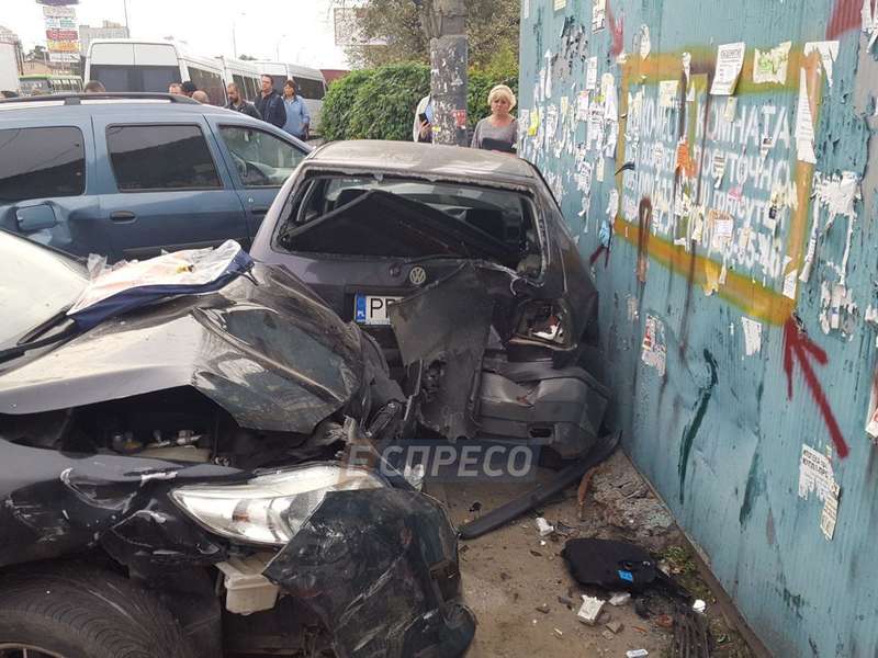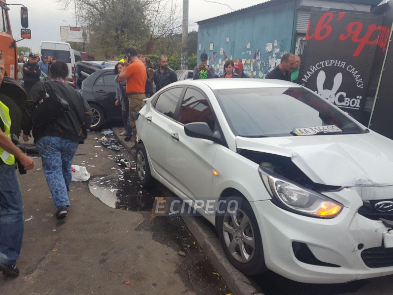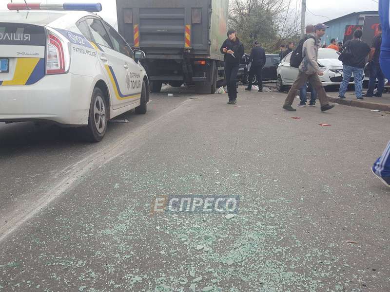 На въезде в Киев столкнулись КАМАЗ и 5 легковушек