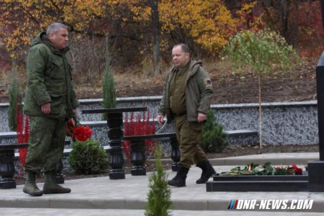 Главарь «ДНР» Александр Захарченко сегодня принял участие в церемонии открытия «мемориала» погибшим боевикам, гдеи возложил цветы к могилам ликвидированных наемников Арсена Павлова (Моторолы) и Михаила Толстых (Гиви).