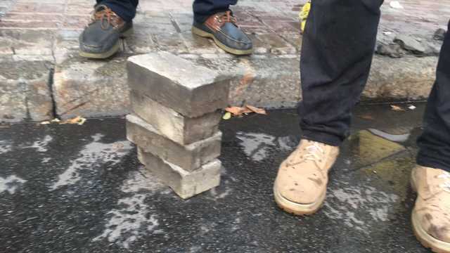 Активисты начали разбирать брусчатку под Радой. Однако спустя какое-то время прекратили. Пока михомайдановцы решили не провоцировать полицию и брусчатку пока не разбирать, хотя несколько плиток все же удалось вытащить.