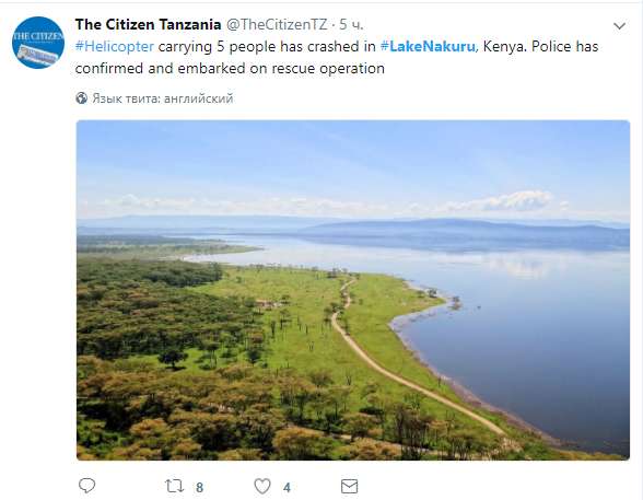 Takeoff, moments before the chopper crashed into Lake Nakuru. pic.twitter.com/DrOL9MHTT7