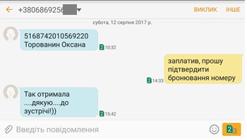 Для перевірки того, хто ж саме займається веденням готельного бізнесу, ми зателефонували до готелю та спробували забронювати номер. Жінка, яка відповіла за номером, зазначеним в оголошенні, підтвердила можливість броні номера за умови сплати завдатку та надіслала номер картки, куди треба було здійснити передоплату. Як ми й припускали, це була картка на ім’я Оксани Торованин. Отже, саме дружина прокурора, а не його теща, веде підприємницьку діяльність і не дуже це приховує. Приховує лише доходи від цієї діяльності. Звісно, що це порушує і антикорупційне законодавство і правила ведення бізнесу.