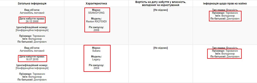 Повертаючись до іншого майна зазначимо, що згідно з декларацією у власності прокурора два автомобілі – SsangYong Rexton 2008 року випуску та Subaru Legacy 2004-го.