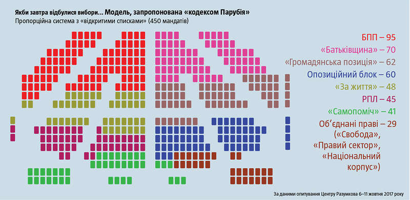 Собственно, законопроект Чумака становится одним из трех, которые Рада отклоняет на вечернем заседании 19 октября. Он получает наибольшую среди конкурентов, однако недостаточную поддержку зала - 169 голосов. Однако это не значит, что тема окончательно закрыта. Дело в том, что анонсированный проект избирательного кодекса «уважаемого и любимого» Андрея Парубия № 3112-1 в части выборов в Раду фактически совпадает с проектом Чумака. На самом деле оба документа только формально новые. Они дублируют нормы зарегистрированного еще в 2010-м проекта избирательного кодекса авторства Юрия Ключковского. Поэтому окончательная судьба требования о выборах по открытым спискам решится после 6 ноября, когда депутаты вернутся с очередного перерыва на заседаниях=.