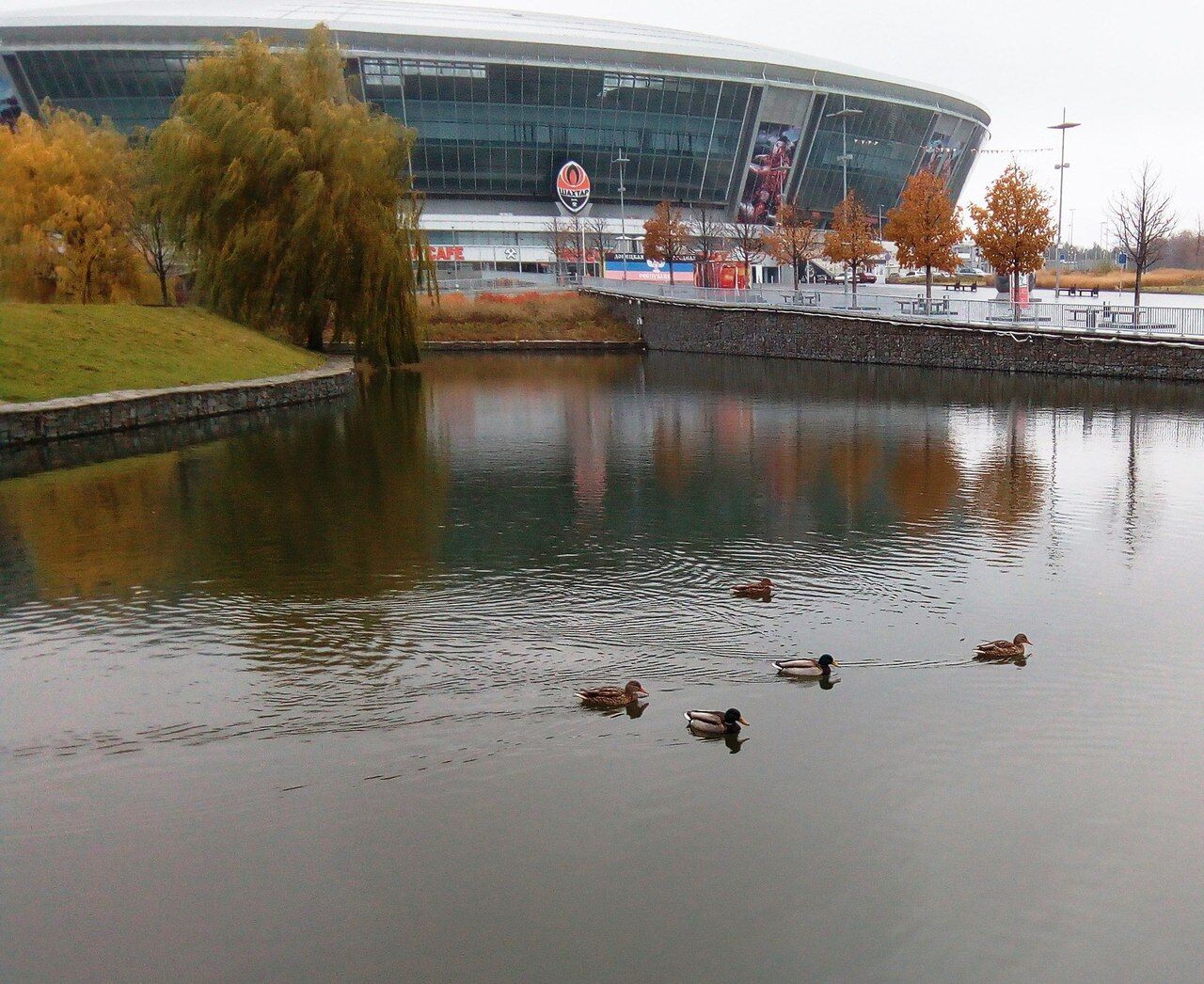 Вокруг оккупированной "Донбасс Арены" в Донецке с голода умирают утки, которых когда-то завезли для украшения парка. О проблеме животных написали местные жители в паблике "Типичный Донецк".