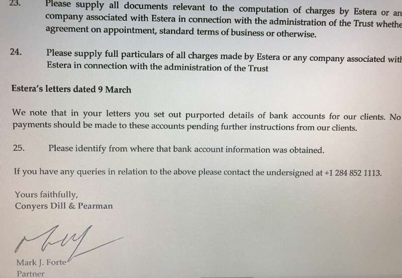 Что же касается детей, то перевод им прибыли от принадлежащих им активов остановила сама Татьяна. На официальный запрос трастового управляющего юридическая фирма Татьяны Еремеевой ответила, что никаких платежей траст не может осуществлять "до момента получения дальнейших инструкций от Еремеевой Татьяны и Романа Еремеева". При этом сама Еремеева заявляет в СМИ, что не получает от доставшихся в наследство активов никакого дохода, обвиняя в нечестности и непорядочности бывших партнеров своего мужа. При этом факт того, что она сама заблокировала получение дохода, также подтверждается обнародованными документами.