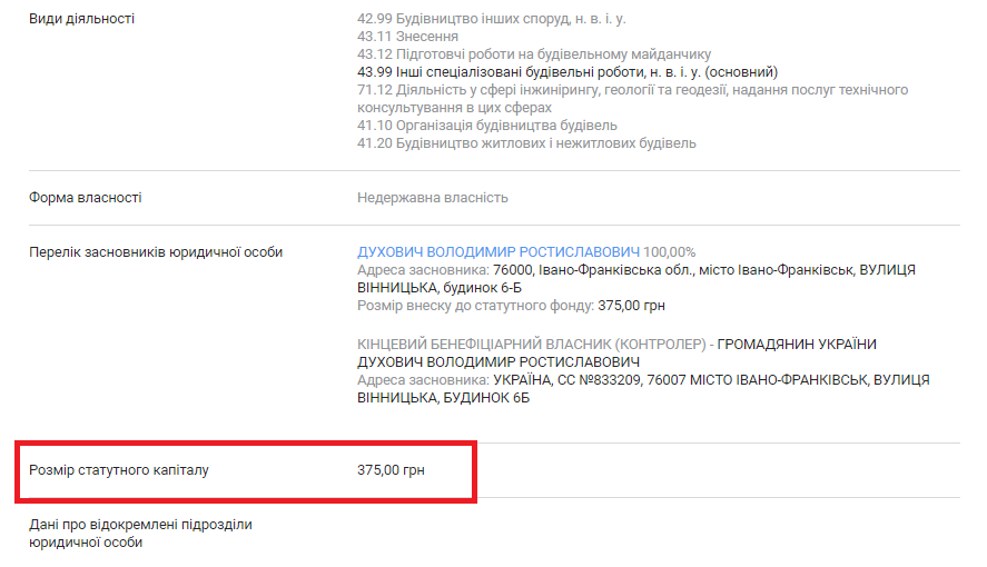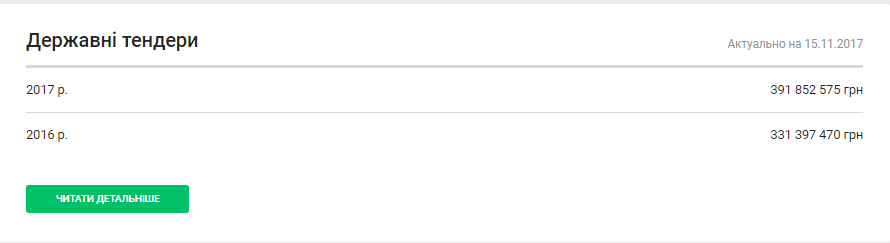 При этом фирма с уставным капиталом 375 гривен за последние два года активно выигрывала бюджетные деньги, победив на тендерах в общей сложности на сумму более 720 миллионов гривен!