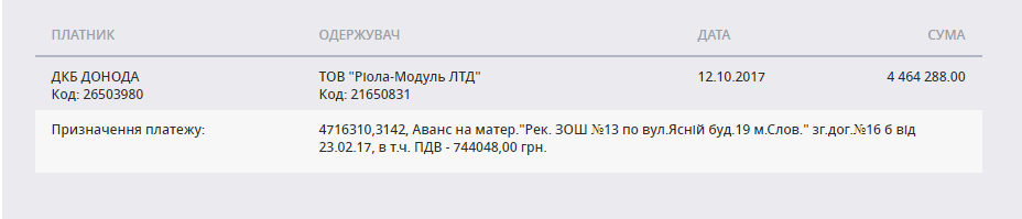 Важно отметить, что, согласно порталу Е-дата, деньги через казначейство компания, связанная с Розенблатом, в этом году за ремонт краматорской гимназии еще не получала.