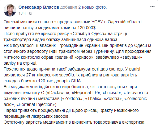 Теги: Международный аэропорт ОдессаЛекарстваКонтрабандаВласов Александр
