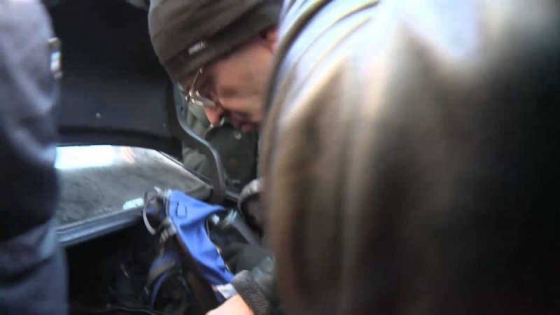 На ул. Институтской (напротив Крепостного переулка) активисты «самообороны» задерживают черную «Хонду». В багажнике машины они находят винтовку с прибором, похожим на оптический прицел. Одним из людей, осматривающих авто, был нардеп «Батькивщины» Сергей Пашинский. Он приказал человеку, вышедшему из салона иномарки, сесть обратно. При этом активисты кричали, что необходимо понюхать оружие, чтобы удостовериься, что из него в последние несколько часов не стреляли. Но Пашинский сам сел в это авто и был таков.
