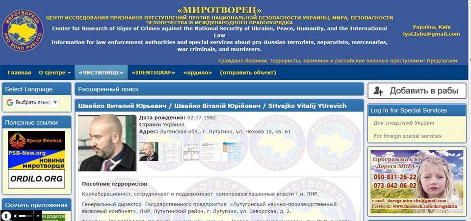 Цей Віталій з 2014 року, знаходить в базі «Миротворець».