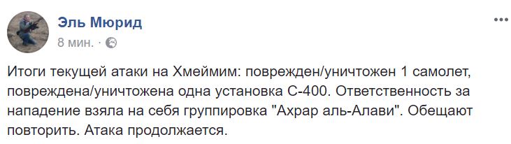 Стоит отметить, что воздушная атака на Хмеймим произошла в ночь на 7 января.