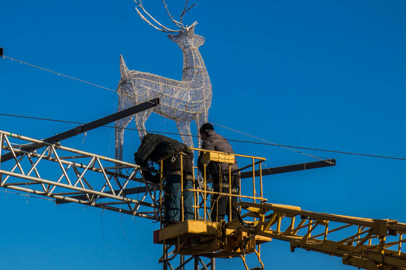 Мужчины будут убирать иллюминацию и декор со всего зимнего городка на площади