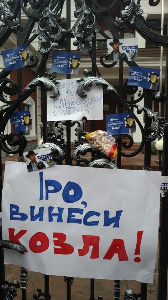 Нет сомнений, что поездка к особняку разозлила Генпрокурора. Участники принесли «флаг коррупционера» — клетчатое «тюремное одеяло Насирова», которое «скучает» по его коллегам по фракции БПП, включая Витальевича. Требовали: «Луценко на нары!». Прикрепили к воротам плакаты: «Чемодан, вокзал, Россия». Принесли бывшему политузнику баранки «к тюремному чаю».